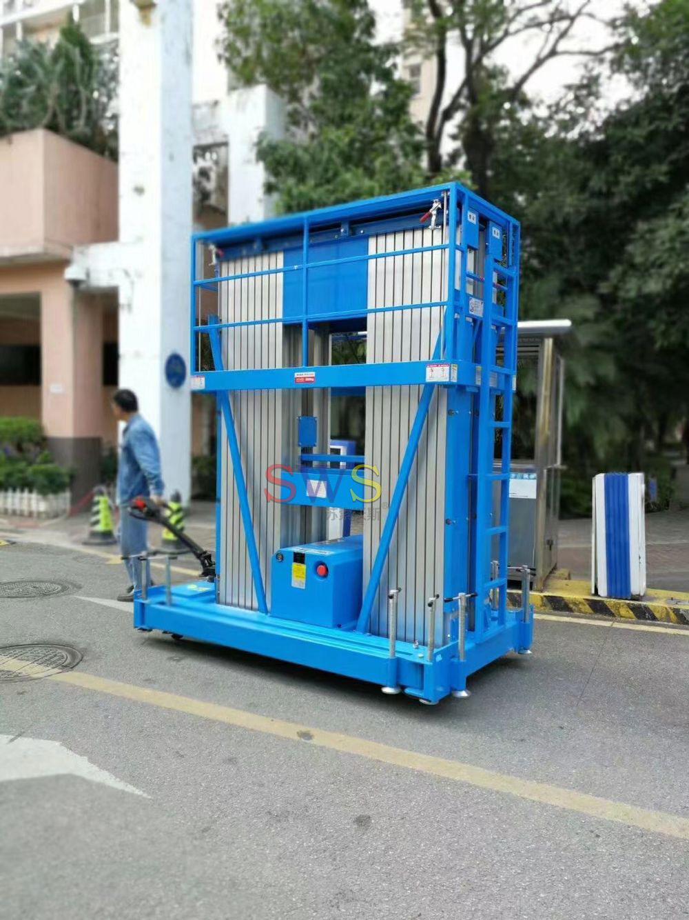 液壓起升,設(shè)有緊急下降閥裝置,具有輕便、靈活的特性,適用單人作業(yè)。