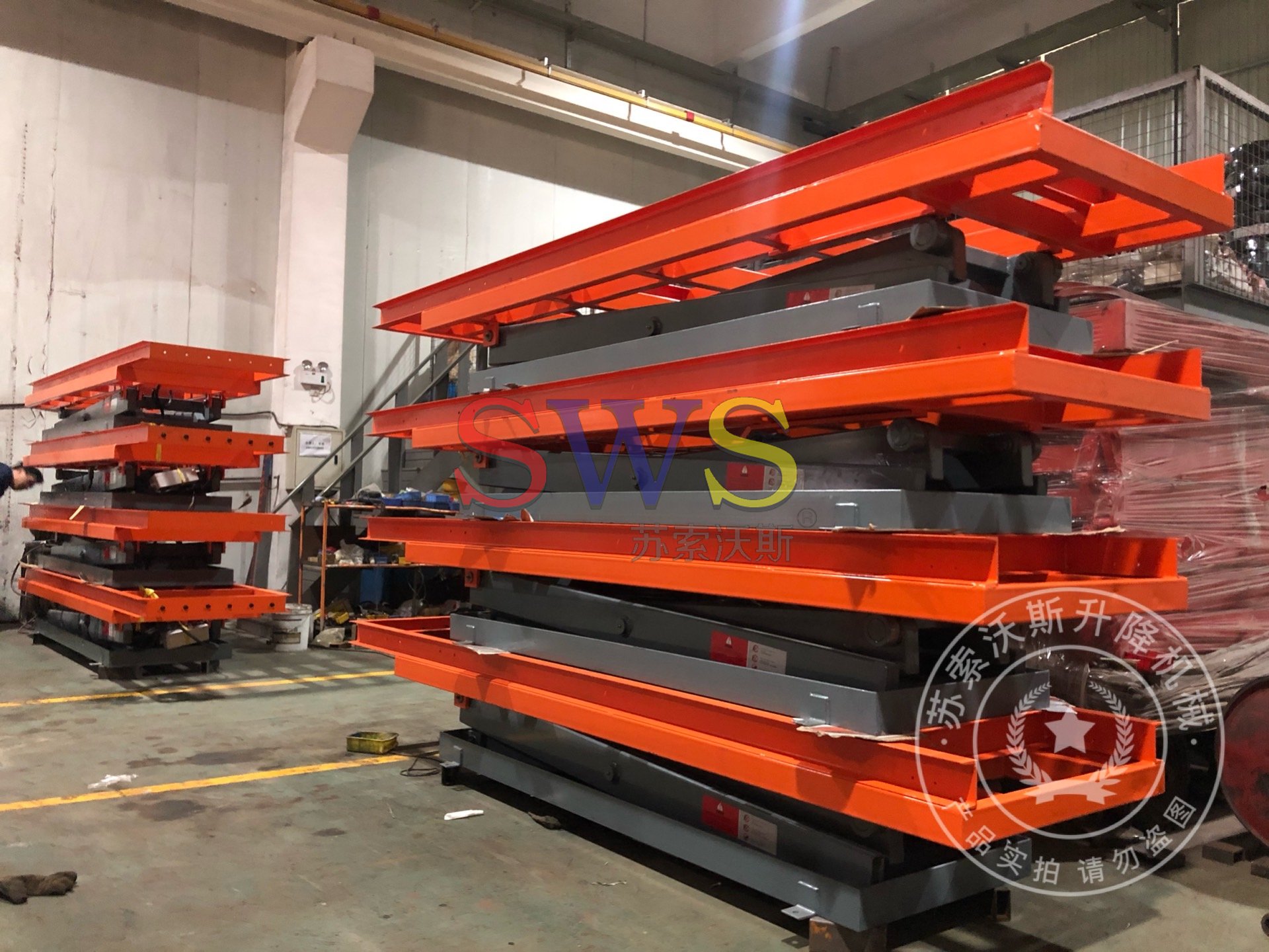平臺(tái)車(chē)應(yīng)配有兩套升降機(jī)構(gòu),可同時(shí)操作升降。升降機(jī)構(gòu)應(yīng)平穩(wěn)、安全可靠,沒(méi)有明顯搖晃、震蕩等現(xiàn)象,速度過(guò)快有緩沖力,。